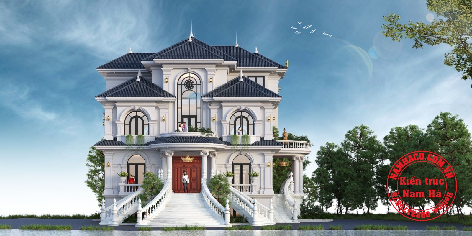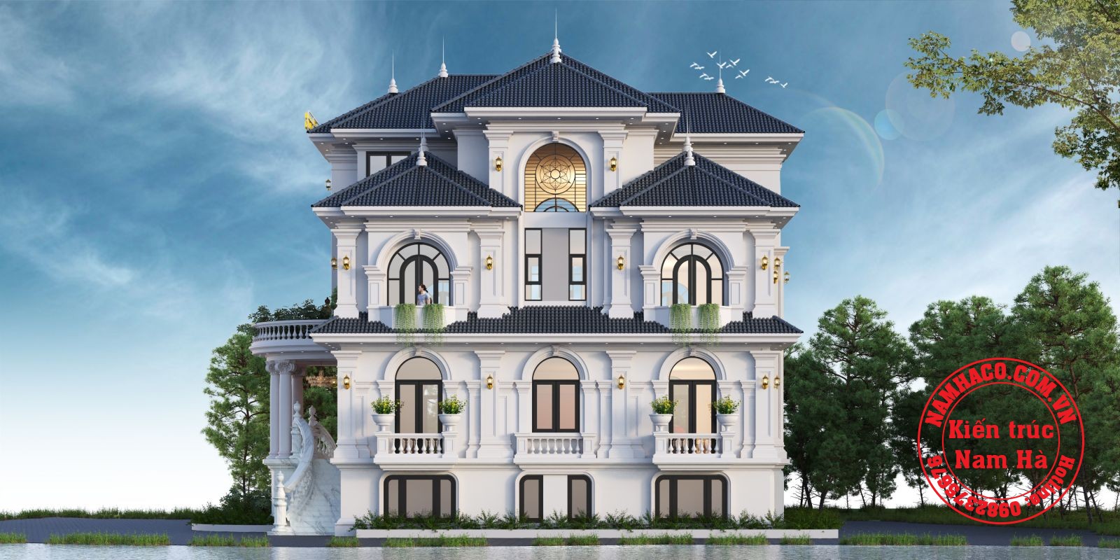 Biệt thự tân cổ điển 3 tầng của gia đình ông Đạo ở Lý Nhân,Hà Nam là sự kết hợp hài hòa giữa phong cách kiến trúc hiện đại, tinh tế và nét cổ điển sang trọng. Toàn bộ ngoại thất biệt thự sử dụng tone màu trắng trang nhã, tinh khôi tạo nên vẻ đẹp sang trọng, hiện đại. Những hoa văn tinh xảo, phức tạp được lược bỏ hoàn toàn, thay vào đó là những đường phào chỉ nhẹ nhàng điểm nên vẻ đẹp mềm mại, quý phái mà thanh thoát cho công trình.