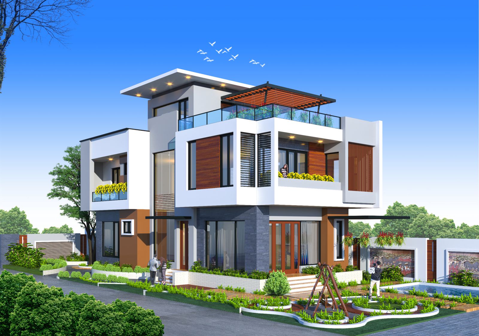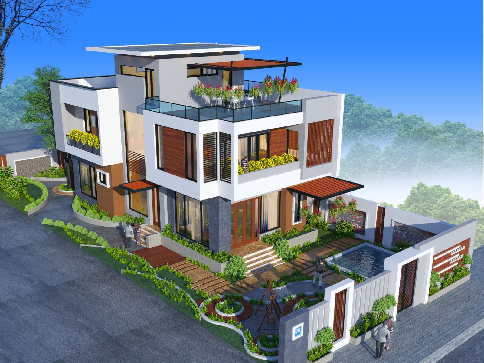 Hình khối mẫu biệt thự đẹp không quá đồ sộ như những tòa lâu đài, dinh thự lớn, nhưng với phong cách kiến trúc hiện đại, hình khối kiên cố, đường nét trang nhã cùng màu sắc tươi sáng, đã làm toát lên sự sang trọng và tinh tế cho ngôi nhà 3 tầng.