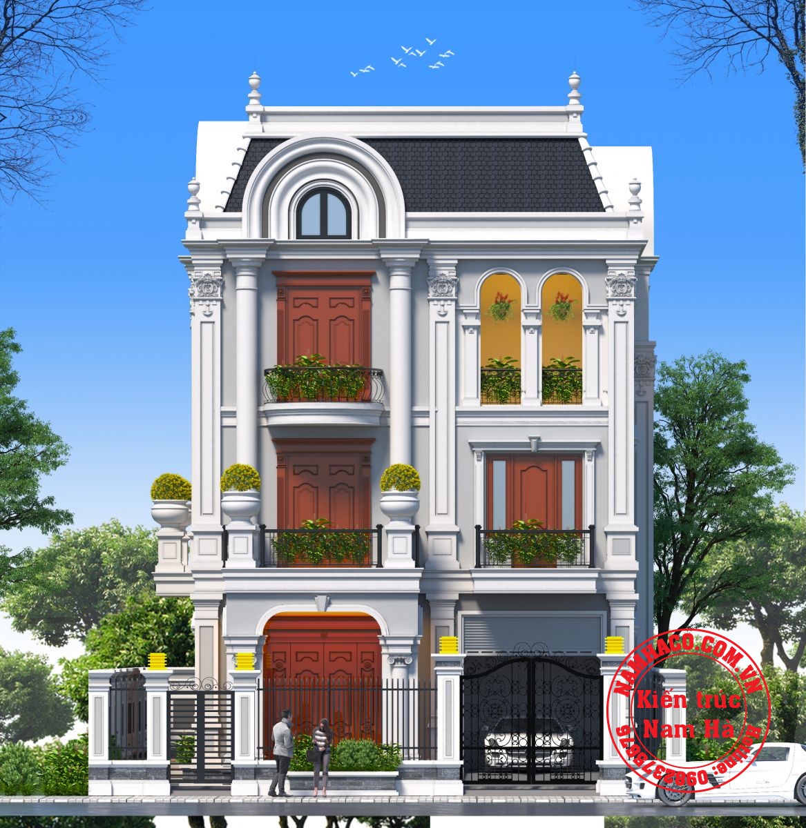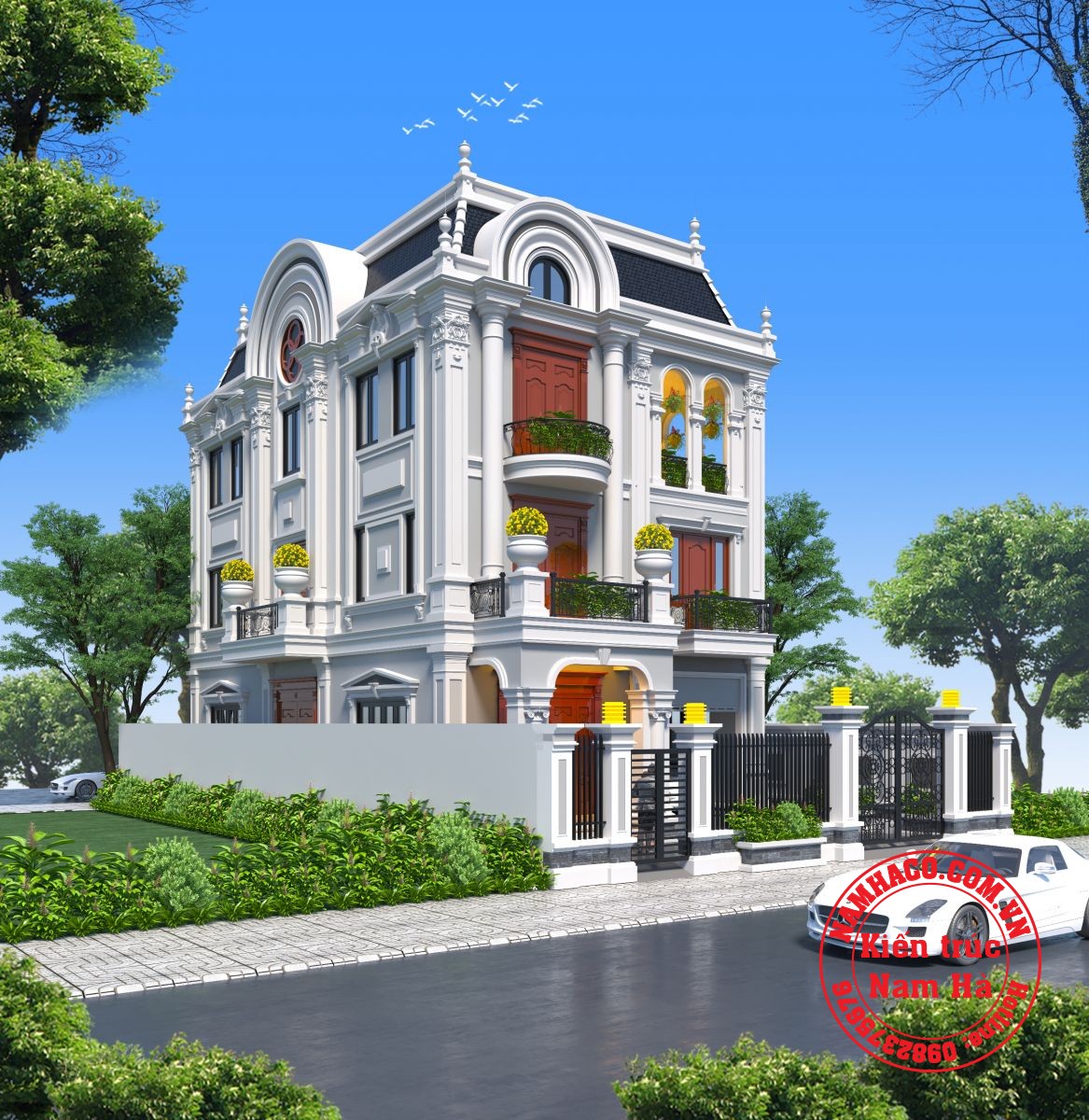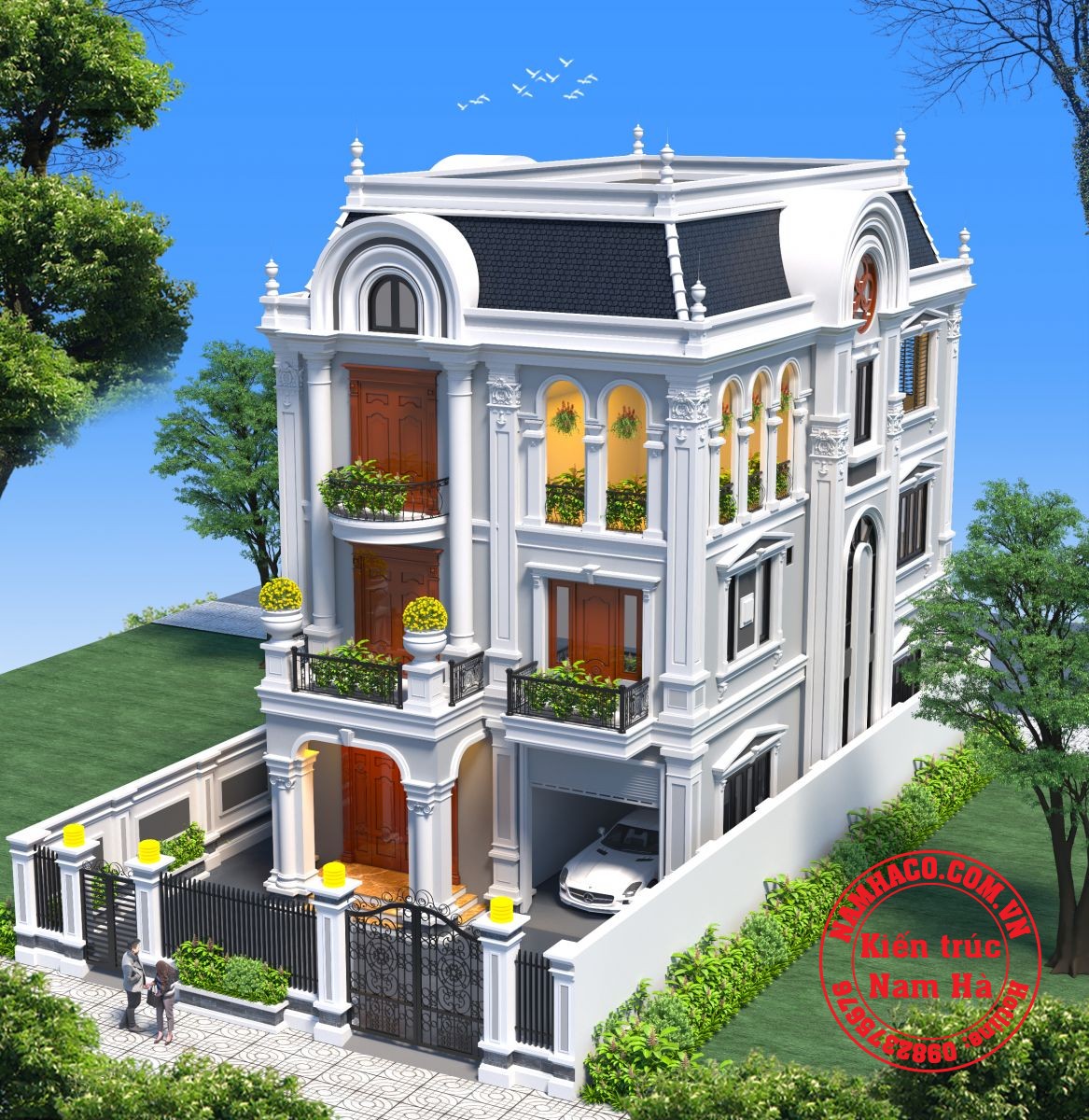 Để thiết kế biệt thự đẹp cần phải có sự kết hợp hài hòa của các yếu tố phong thủy và công năng sử dụng với nhiều diện tích và nhiều khu đất khác nhau. Cùng kiến trúc Nam Hà tham khảo một trong những mẫu biệt thự đẹp, sang trong theo phong cách Châu Âu dưới đây. Bạn sẽ cảm thấy choáng ngợp bởi vẻ sang trọng, nguy nga từ mặt tiền của ngôi biệt thự. Với lối kiến trúc độc đáo, kết hợp các họa tiết hoa văn cổ điển mang đặc trưng của phong cách châu Âu với các đường chỉ mạnh mẻ tạo nên từ hình khối còn làm cho căn biệt thự trở nên thu hút, nổi bật hơn.