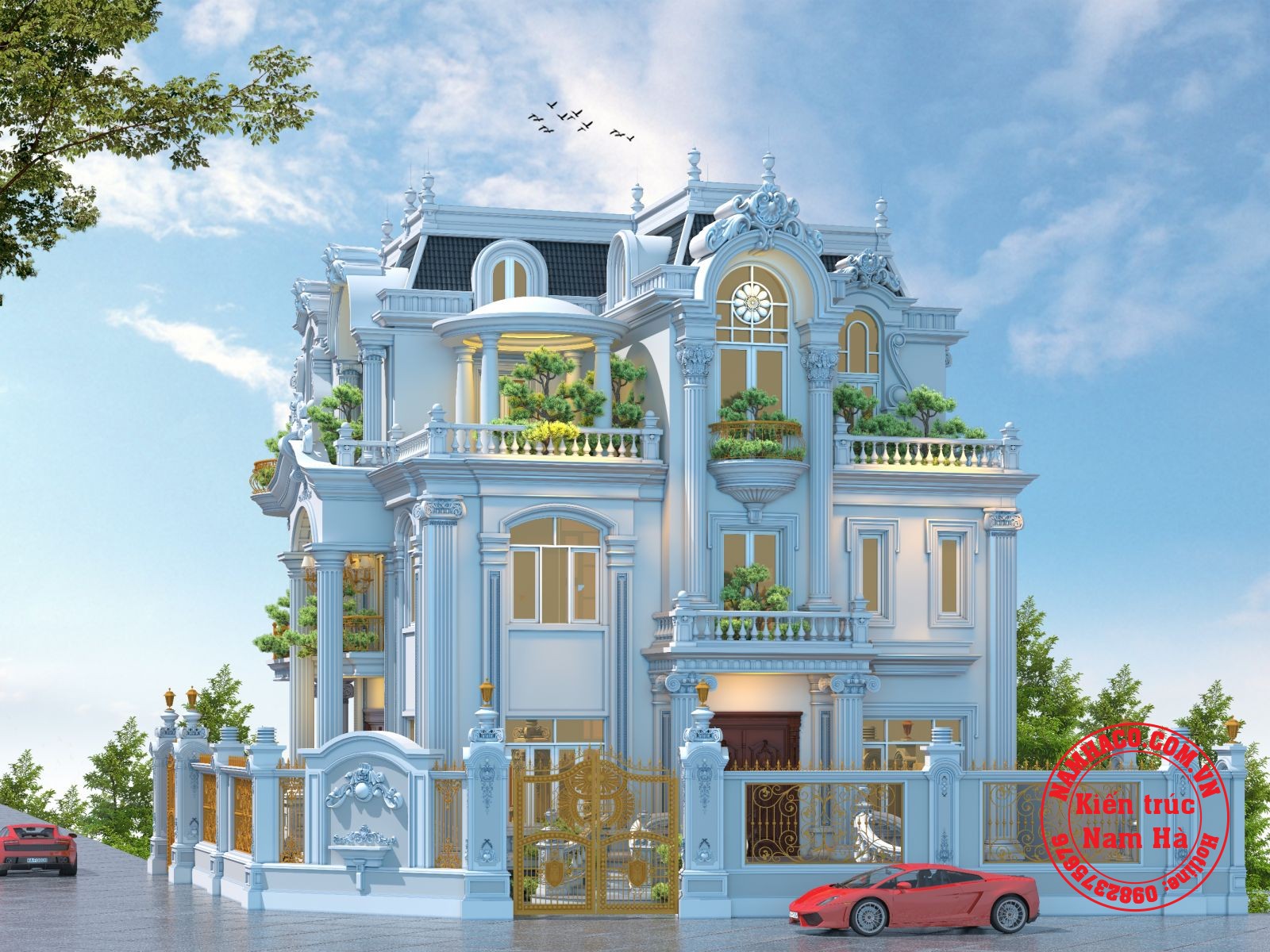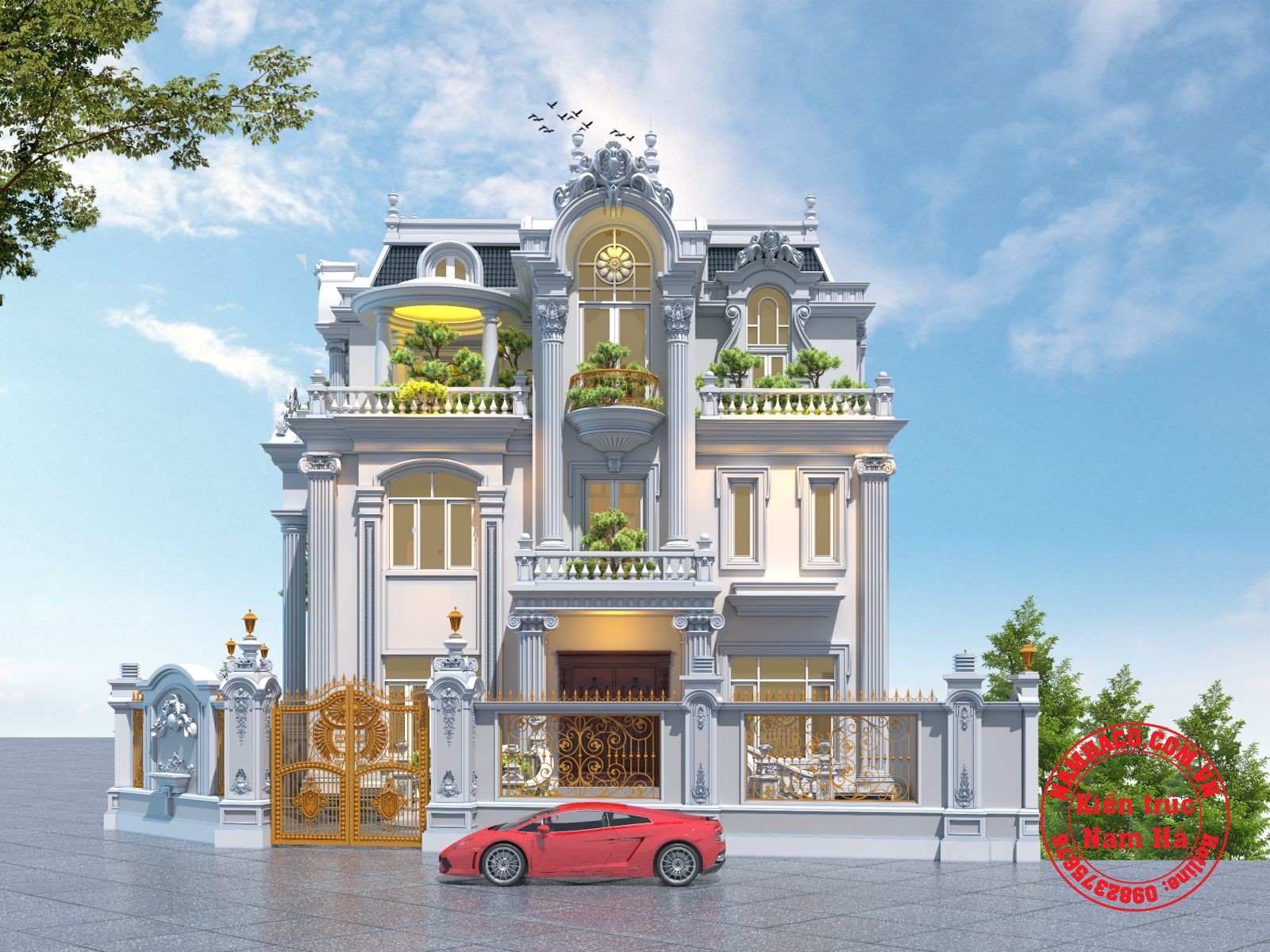 Nhìn vào bản phối cảnh, bạn cùng có thể thấy rằng, mẫu thiết kế biệt thự tân cổ điển 3 tầng kiểu Pháp được thiết kế vô cùng cân đối với cách bố trí hệ thống trụ cột, cửa, hoa văn,… để mang lại một vẻ đẹp hài hòa, đẳng cấp nhưng vẫn không kém được sự thanh lịch trang nhã.