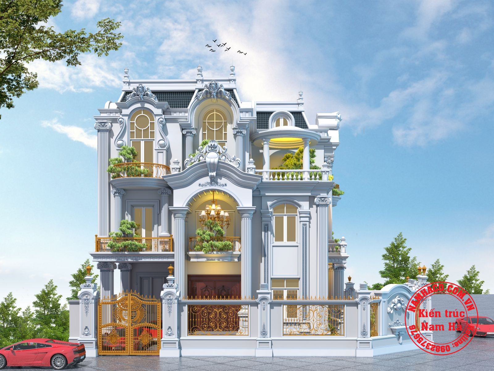 Từng chi tiết của ngôi biệt thự đều được chọn lọc một cách kỹ càng, thiết kế một cách tỉ mỉ để công trình mẫu biệt thự tân cổ điển 3 tầng kiểu Pháp luôn hướng tới một vẻ đẹp thẩm mỹ, hài hòa cùng với đó là công năng sử dụng tối ưu, tiện nghi. Hệ thống phào chỉ, gờ cũng được thiết kế vô cùng tinh xảo, tỉ mỉ được lấy ý tưởng từ các đường gờ, phào chỉ, hoa văn đắp nổi ở các tòa lâu đài Châu Âu nổi tiếng.