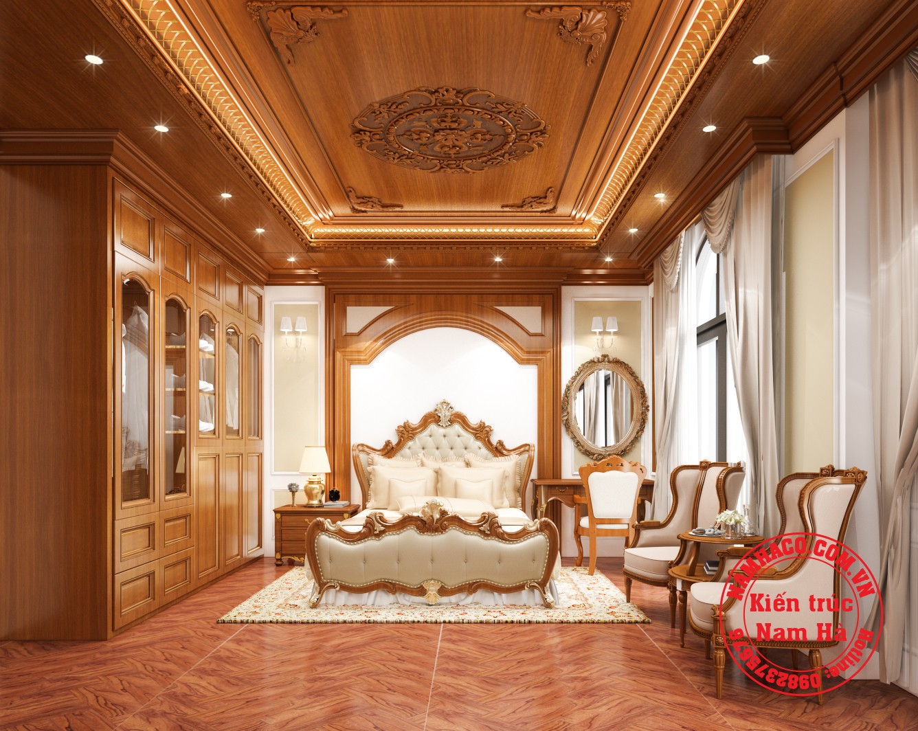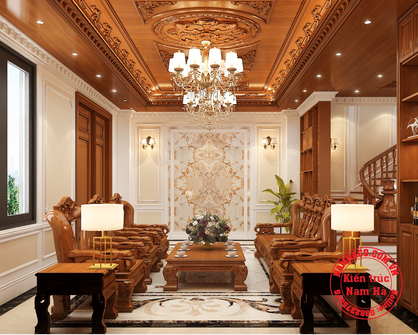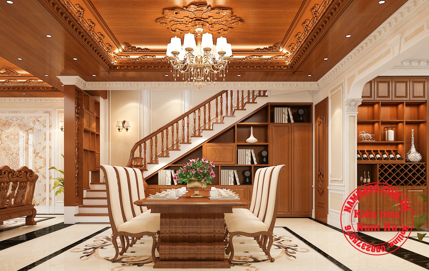 Mẫu nội thất tân cổ điển kết hợp hiện đại dành cho biệt thự của gia đình a Thọ ở Đồng Văn là thiết thiết kế 2 trong 1 vô cùng tuyệt vời. Sự kết hợp độc đáo đã tạo ra một không gian sang trọng và hết sức sống động. Khu vực phòng khách và sinh hoạt chung với những món đồ gỗ tự nhiên cao cấp cùng hệ thống hoa văn nhẹ nhàng thể hiện rõ nét phong cách tân cổ điển. Còn không gian phòng ngủ lại vô cùng tối giản, thoáng đãng.