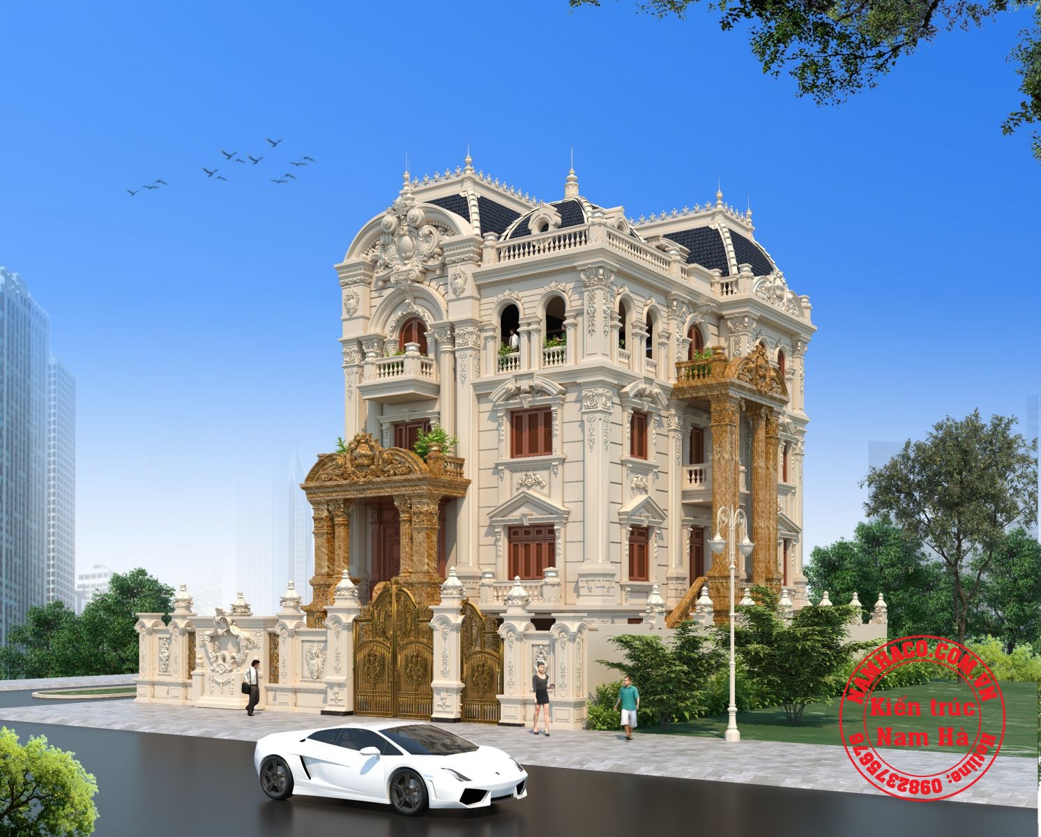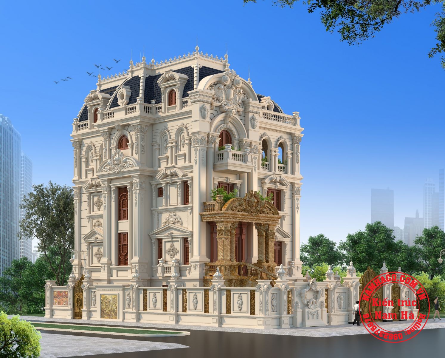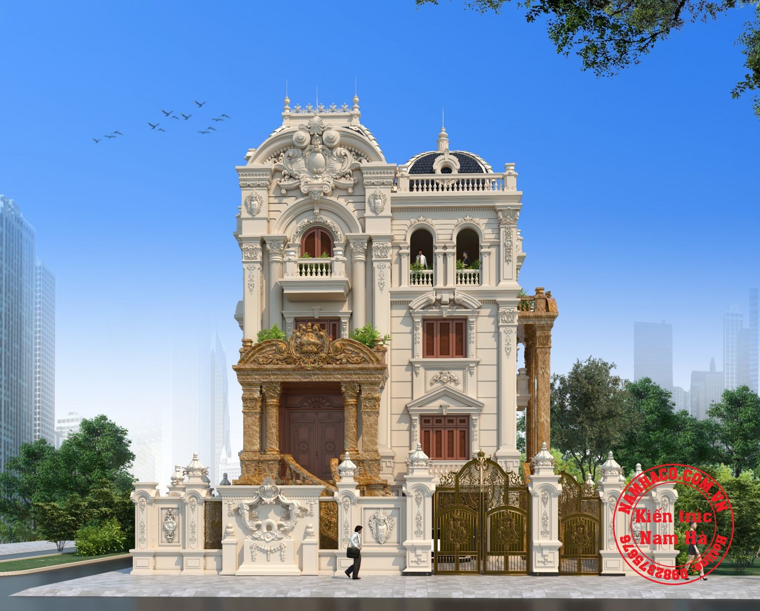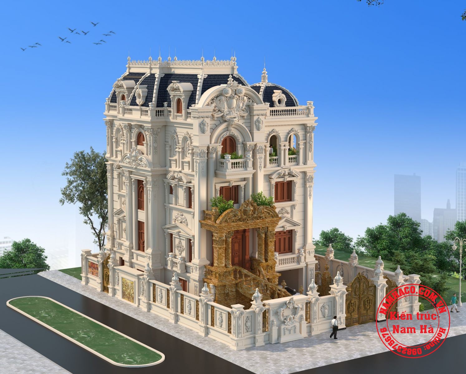 Thiết kế lâu đài 4 tầng cổ điển của kiến trúc Nam Hà thể hiện nét kiều diễm, xa hoa, lộng lẫy là lựa chọn được nhiều chủ đầu tư yêu thích kiến trúc Pháp với những họa tiết hoa văn, phào chỉ yêu cầu độ chuyên nghiệp cao, tỉ mỉ đến từng chi tiết nhỏ, cầu kỳ mà cuốn hút thay gia chủ khẳng định gia thế, cá tính và gu thẩm mỹ riêng của mình.