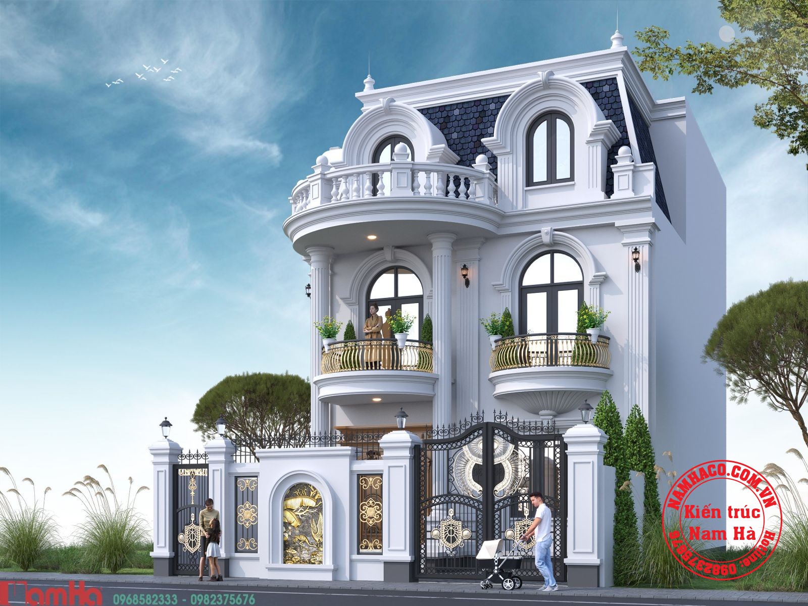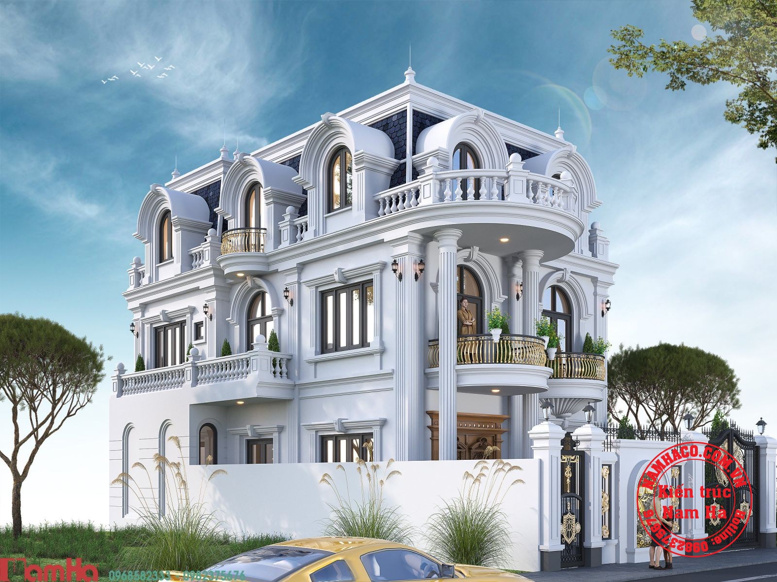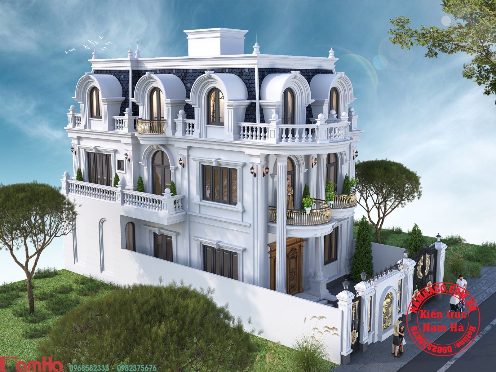 Căn biệt thự mang hơi hướng chủ đạo là phong thái châu Âu, lịch lãm và uy nghi trên mọi góc nhìn. Khối mái marsand và sảnh chính cũng được thiết kế lại để tạo được điểm nhấn hơn cho căn biệt thự thêm phần sang trọng, kiều diễm. Với mái vòm cao là một thiết kế đặc trưng cho các công trình kiến trúc cổ điển nó tôn vinh lên sự cao sang của công trình cũng như gia đình chủ đầu tư, các cột trụ lớn mang lại nét đẹp mạnh mẽ và vững chãi cho công trình.