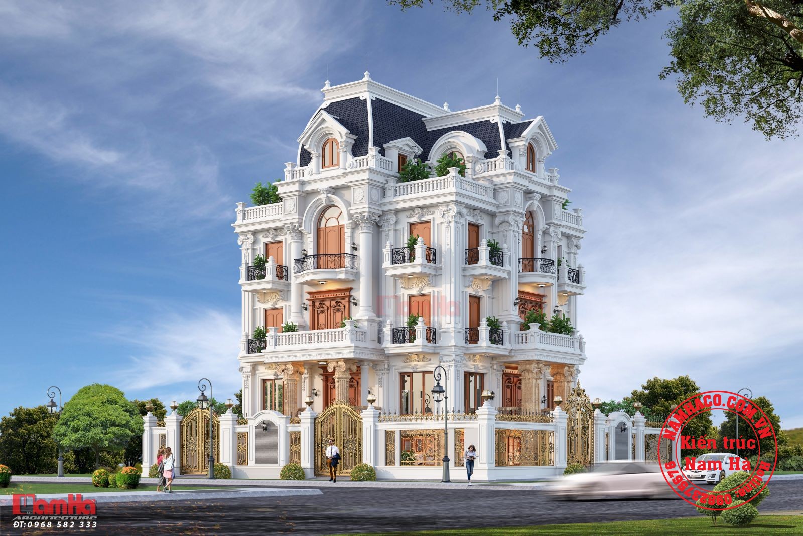 Xét về hình khối kiến trúc biệt thự tân cổ điển mang đến một không gian sống đẳng cấp và tiện nghi, cùng với những trải nghiệm nguy nga của một hình khối kiến trúc mặt tiền choáng ngợp và đồ sộ. Xu hướng thiết kế nhà đẹp này thích hợp với những hộ gia đình có điều kiện về tài chính, đồng thời muốn khẳng định vị thế cũng như thẩm mỹ của bản thân. Mẫu thiết kế biệt thự tân cổ điển 5 tầng sang trọng và tráng lệ dưới đây mà kiến trúc Nam Hà sắp sửa giới thiệu đến các bạn cũng không thua kém gì một tòa lâu đài đồ sộ và nguy nga.