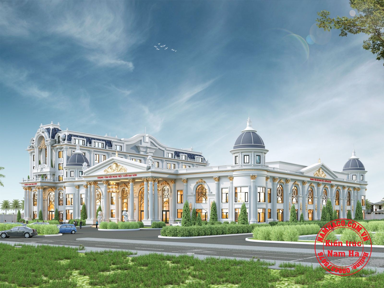 Thiết kế khách sạn tân cổ điển ngày càng được ưa chuộng và đang trở thành xu hướng hiện nay. Đặc biệt, các công trình khách sạn thường được thiết kế nhằm đa dạng hóa loại hình kinh doanh như khách sạn nhà hàng, tổ chức sự kiện, tiệc cưới,… Và mỗi vị chủ đầu tư khi quyết định xây dựng khách sạn thường định hình sẵn cho mình mô hình kinh doanh hợp lý, độc đáo. Từ đó dễ dàng thu hút nhiều lượng khách hàng sử dụng dịch vụ. Mẫu thiết kế khách sạn nhà hàng trung tâm tiệc cưới đẹp tại Ninh Bình của kiến trúc Nam Hà là một mô hình kinh doanh điển hình.
