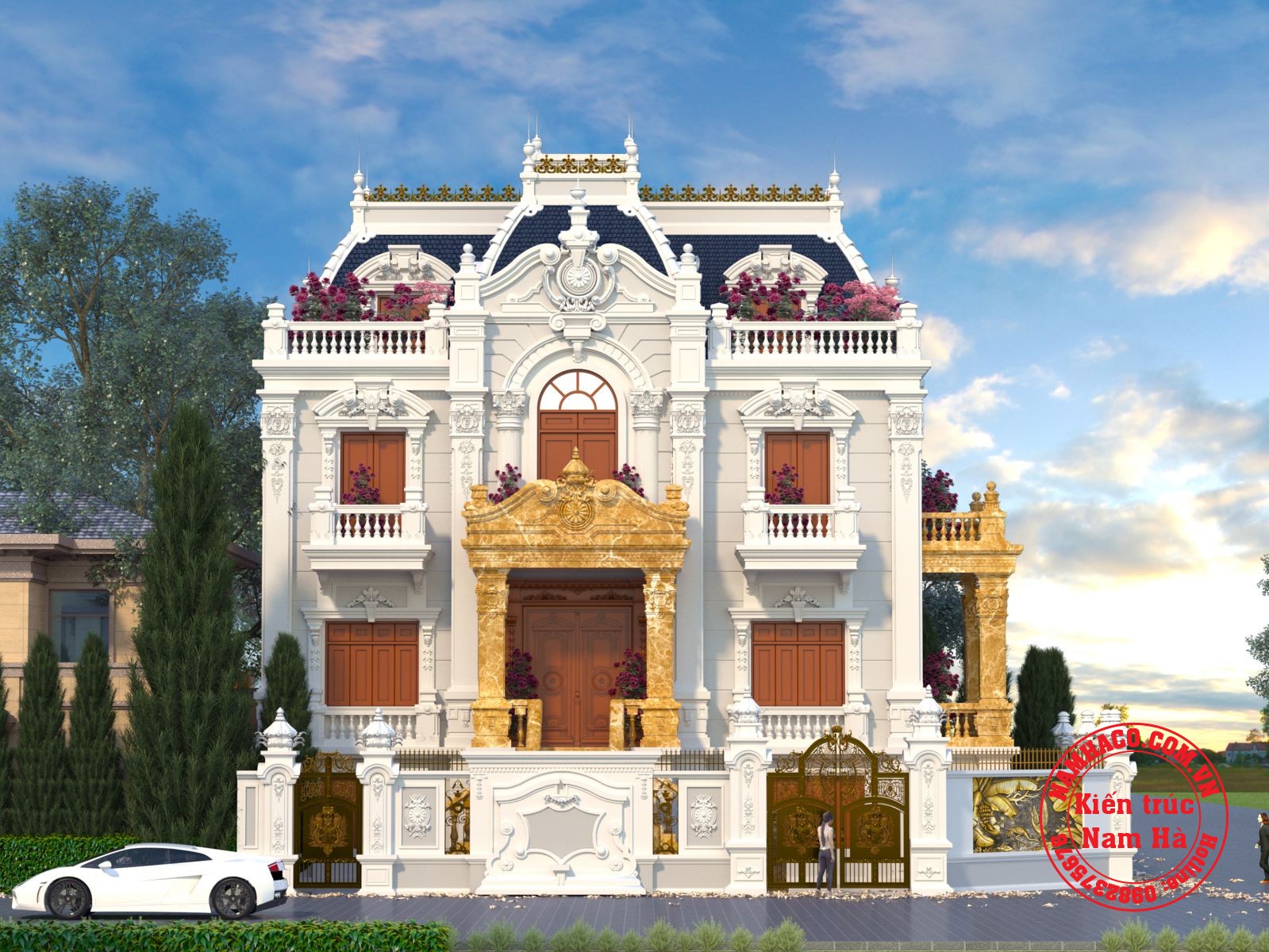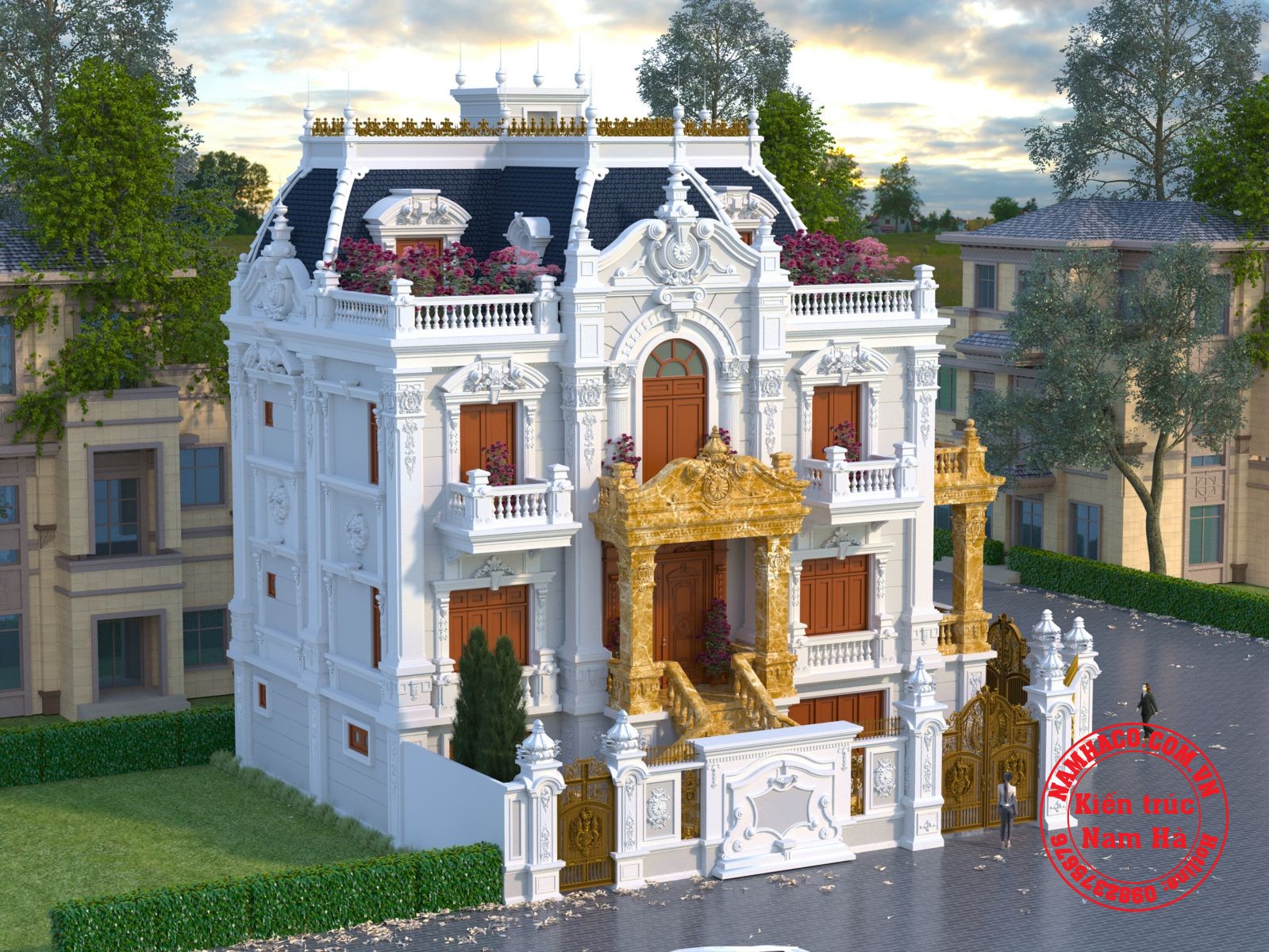 Lâu đài tân cổ điển là phong cách thiết kế mà các vị gia chủ yêu thích nhất trong bộ sưu tập thiết kế biệt thự của Nhà đẹp tinh tế chúng tôi. Những hoa văn họa tiết không quá cầu kì, những bức phù điêu đã được cách tân đơn giản,.. tất cả đều được ứng dụng 1 cách tài tình trong những ngôi nhà được thiết kế theo loại hình phong cách này.Sau đây kiến trúc Nam Hà xin mời quý bạn đọc cùng tham khảo mẫu thiết kế lâu đài mini 3 tầng 1 tum của gia đình ông Mạnh tại Hà Nam để có cái nhìn rõ nét hơn về loại hình nhà đẹp này nhé!